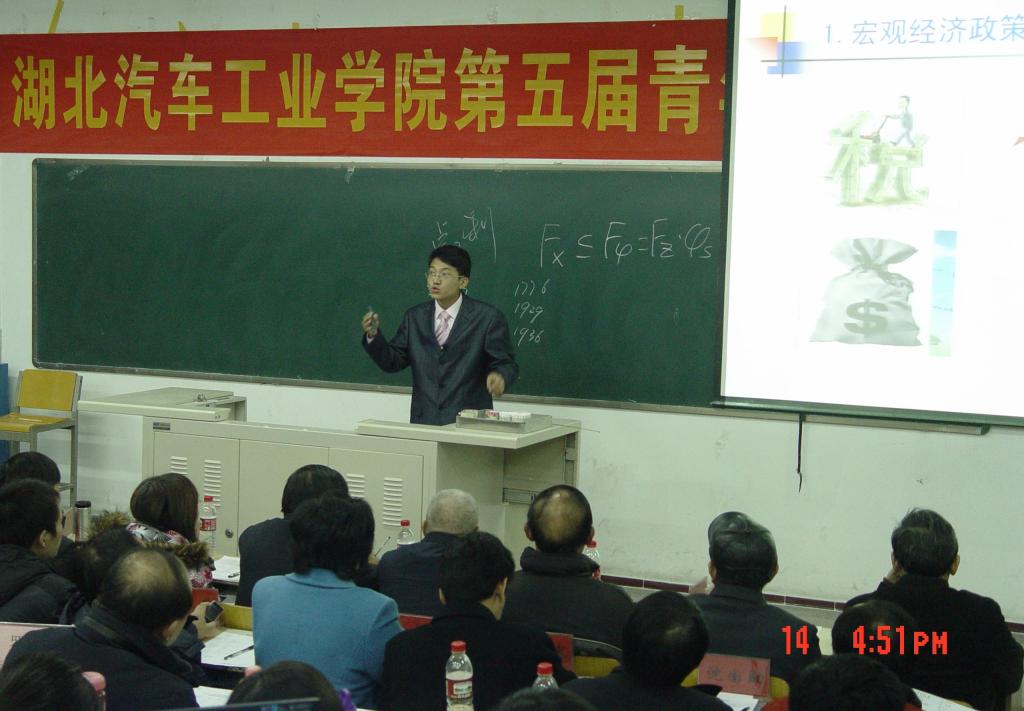 (转 宣传部)本网讯为促进青年教师间的相互学习与交流,调动广大青年教师间的教学积极性和创造性,不断提高课堂效果和教学质量,12月14日下午2点,我校“第五届青年教师教学大奖赛”在2101教室迎来了总决赛。经过层层遴选,经管学院的周恩德、人文社科系的成继平等8位老师脱颖而出,进入决赛。校领导赵鹏飞、王天祥、毛高波、罗永革、陈永莅临本次大赛。